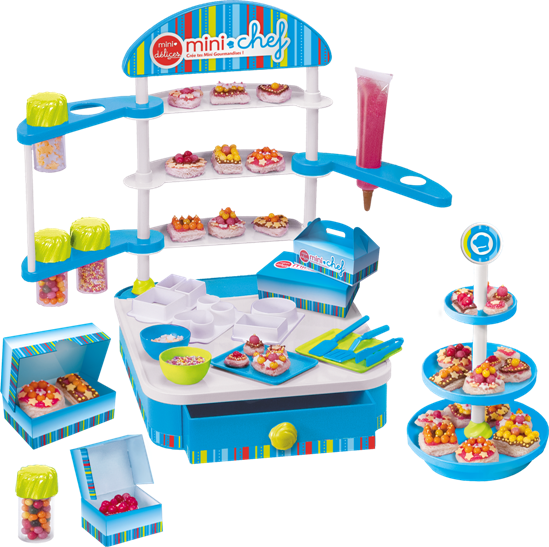 C’est quoi ? un kit génial pour les petits apprentis cuistots ou pâtissiers qui permet de créer et de décorer une multitude de mini-pâtisseries. Il contient des ustensiles, le présentoir, des perles et des tubes  de décorations Vahiné.