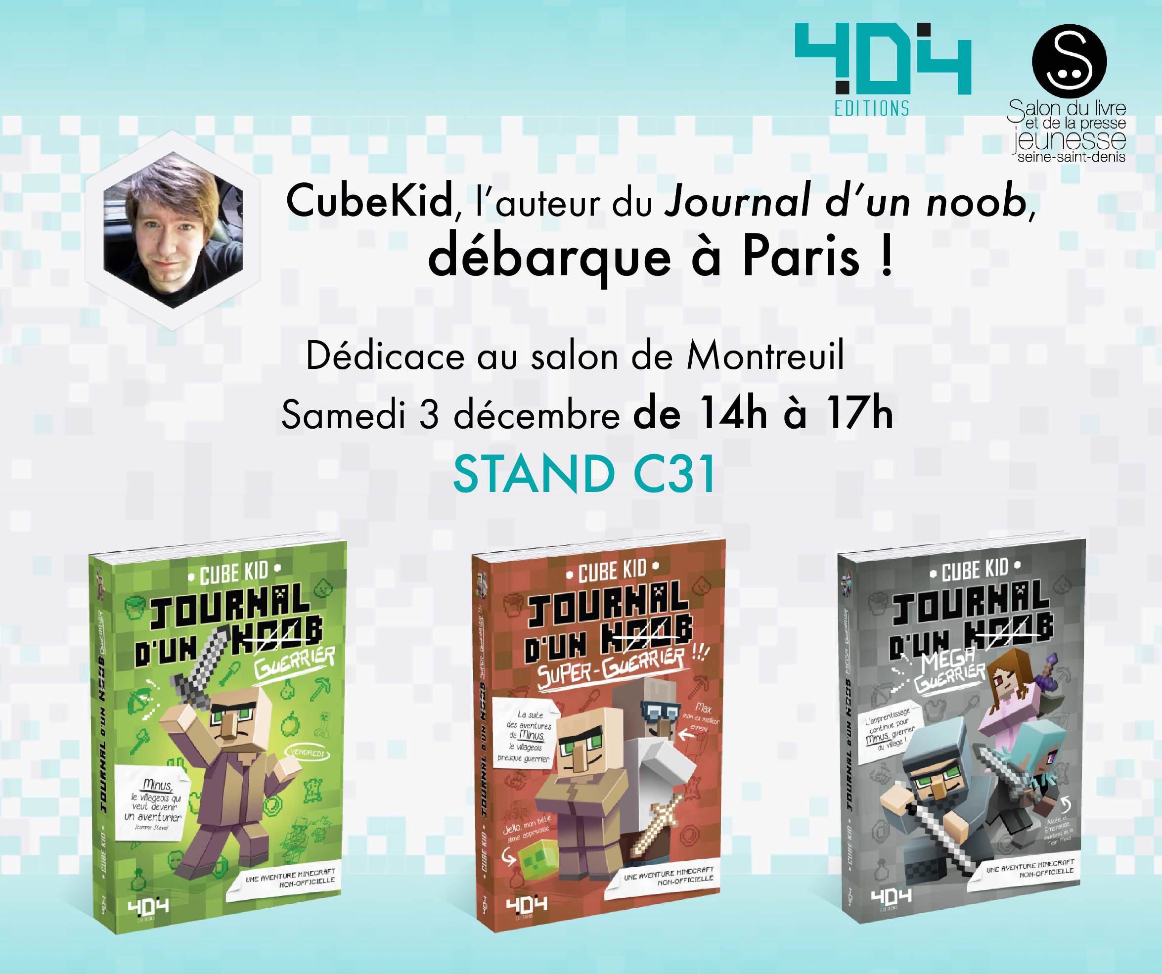 Là, les mamanautop, vous vous demandez de quoi et de qui je parle… Et bien si vous avez chez vous un gamer Minecraft, il a sans doute sur ses étagères l‘un des 3 tomes de la série phénomène à succés « Le journal d’un Noob » écrit par cet auteur, Cube Kid