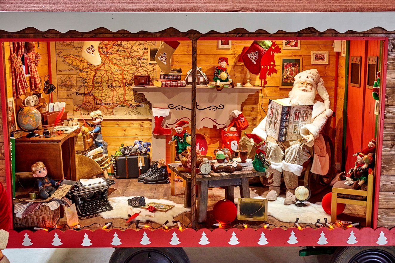 Ici se sont posées trois bulles géantes remplies d’automates, de peluches et de merveilleux décors de Noël. Un peu plus loin, voilà le chalet du Père Noël où ses lutins s’affairent à trier les montagnes de courrier. Votre tout p’tit y ajoutera sa liste de cadeaux rêvés avant d’aller accrocher, dans les arbres de la forêt, son vœu le plus cher.