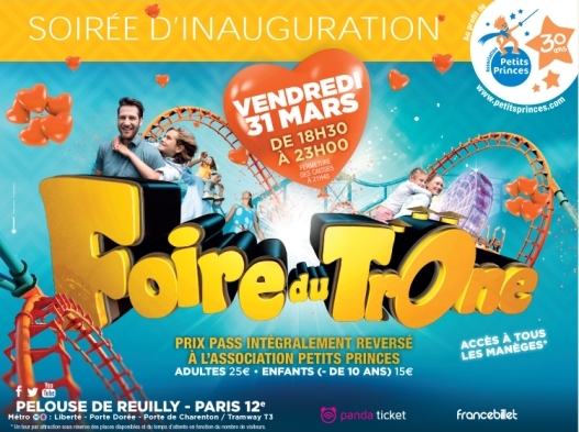Le 31 mars de 18h30 à 23h la Foire du Trône organise une super soirée d’inauguration en partenariat avec l’Association Petits Princes qui fête cette année ses 30 ans.