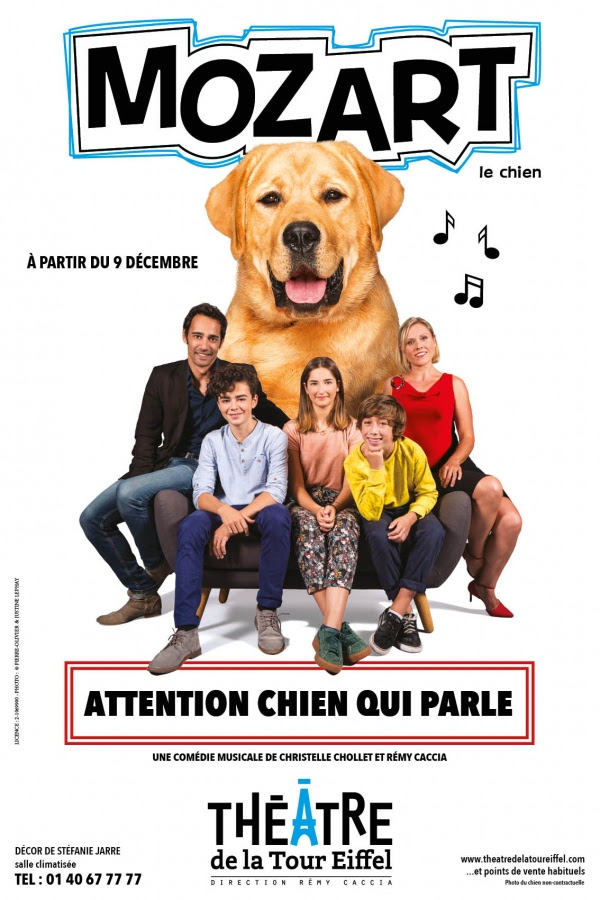 Mozart le chien est aussi une comédie musicale avec des chansons super entraînantes que vous chanterez à tue-tête pendant et après le spectacle.