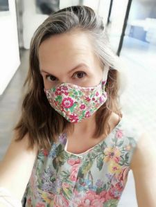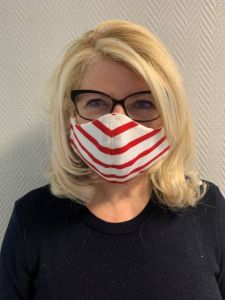 De son côté, Marine avoue avoir, dans un premier temps, suivi le tuto du Pr Daniel Garin : « j’ai d’abord commencé par faire le masque en papier, mais pas n’importe lequel. J’ai pris des serviettes en papier épais non tissé ». Ensuite, Marine a essayé le masque Bandana mais en utilisant un vieux tissu nid d’abeille tissé serré. Mon astuce : j’ai placé sur le tissu un morceau de film alimentaire. Troisième essai, j’ai superposé plusieurs couches de tissus. « Mon truc secret : comme je ne sais pas coudre, j’ai utilisé des bandes autocollantes pour faire des ourlets de rideaux ». Mais ce n’est qu’une étape avant de se procurer un masque en tissu …