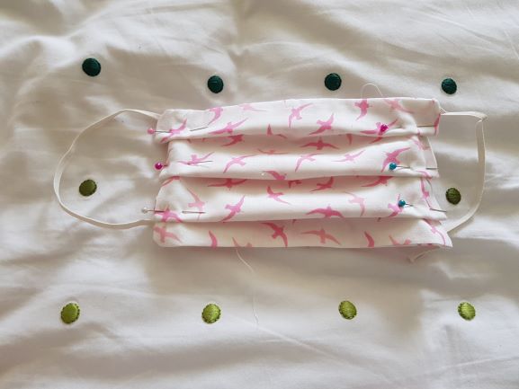 Aujourd’hui, ma meilleure copine et moi, allons fabriquer un masque, chacune de notre côté (confinement oblige) et chacune à notre façon. L’une sait coudre (Sonia) et l’autre pas (Marine), mais au final, nous sommes deux mamanautop débrouillardes et bien décidées à sortir masquées !