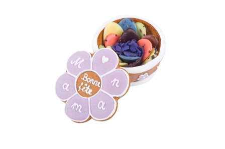 L’adorable petite boite en pain d’épices artisanal garnie de pétales de