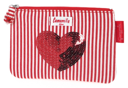 Sans oublier la petite pochette au cœur pailleté Camomilla à 14 €
