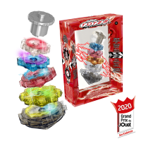 Lorsque vous avez empilé les 5 toupies le plus rapidement possible, vous avez formé votre Totem multicolore. Encore faut-il le faire tenir le plus longtemps possible !