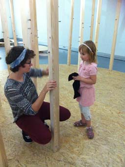 Rendez-vous dans une forêt de poteaux en bois blanc. A l’entrée, l’animatrice bande les yeux de chaque enfant pour mieux leurs faire entendre le chant des oiseaux. Des oiseaux ? Mais où sont-ils ? Ici, pas de volière, pas de nid. L’objectif, c’est d’écouter en se projetant dans l’imaginaire grâce aux sons.