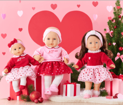 Ce que j’aime aussi chez Corolle c’est que les différentes gammes de poupons et poupées sont vraiment conçues pour s’adapter à l’âge des petits en favorisant le développement de la motricité en fonction des capacités acquises. Pour cette fin d’année, ont met le cap sur 3 nouveaux modèles parés de belles tenues rouge et rose, avec plein de petits cœurs.