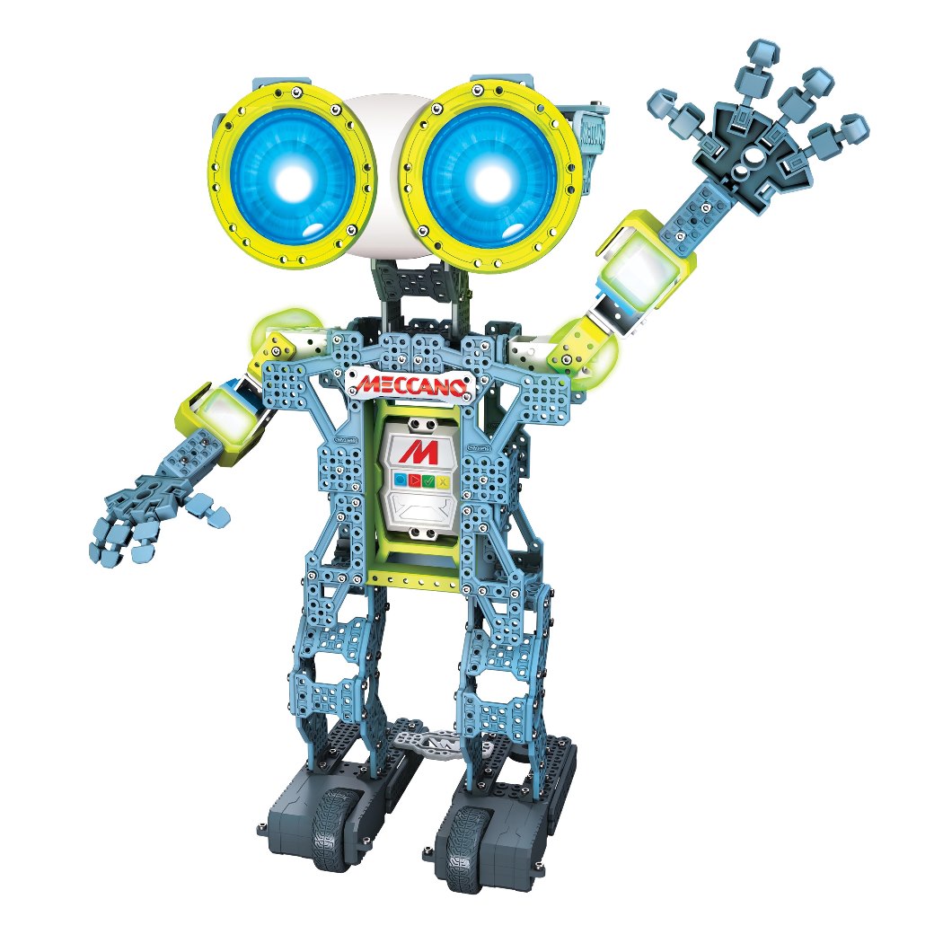 compagnon interactif signé Meccano qui bouge, parle, répond à nos commandes (grâce à la reconnaissance vocale) qu’il faut construire et programmer. Perso j’ai essayé et j’en suis presque plus dingue que mon fils !