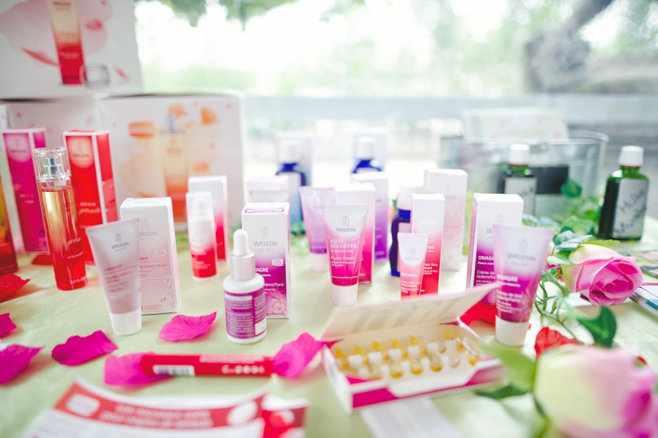 Dans une atmosphère salon de thé très boudoir, la marque Weleda vous fera découvrir gratuitement ses soins visage et corps à la rose musquée bio. J’adore !