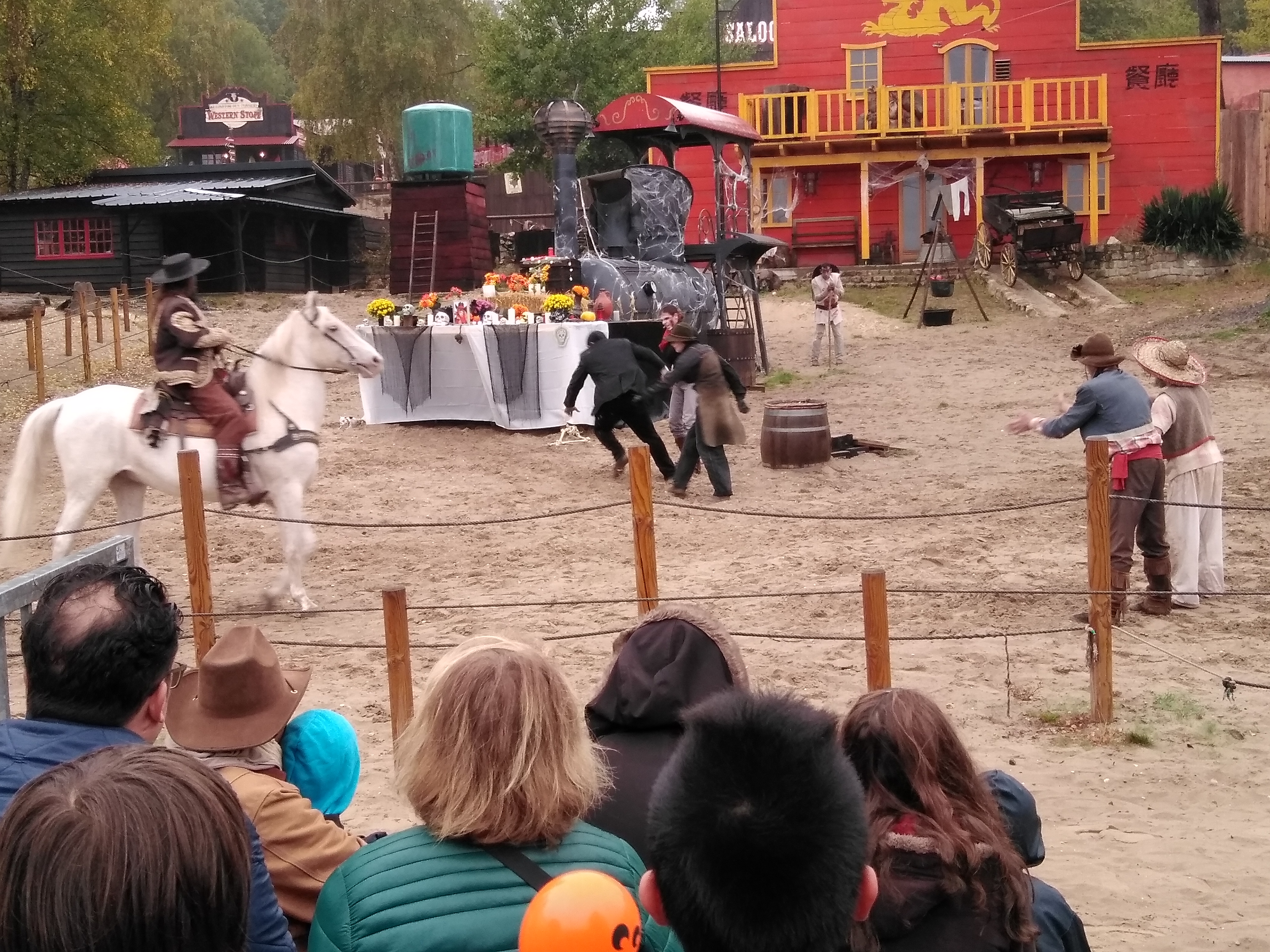 Ne manquez pas le retour du Spectacle DIA DE LOS MUERTOS à 14h30 où des joyeux morts-vivants s’emparent de West City ! Mon fils était captivé !