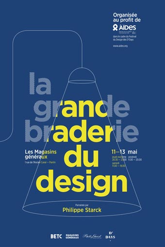 Cette première grande braderie du Design qui se tiendra du 11 au 13 mai 2017 aux Magasins généraux, lieu créé par BETC à Pantin au bord du canal de l’Ourcq, est parrainée par Philippe Stark.