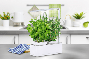 Aromates, légumes feuilles et petits fruit, on les cueille dans sa cuisine. Ils poussent dans une serre intérieure hydroponique qui fournit le bon apport en lumière et hydratation.