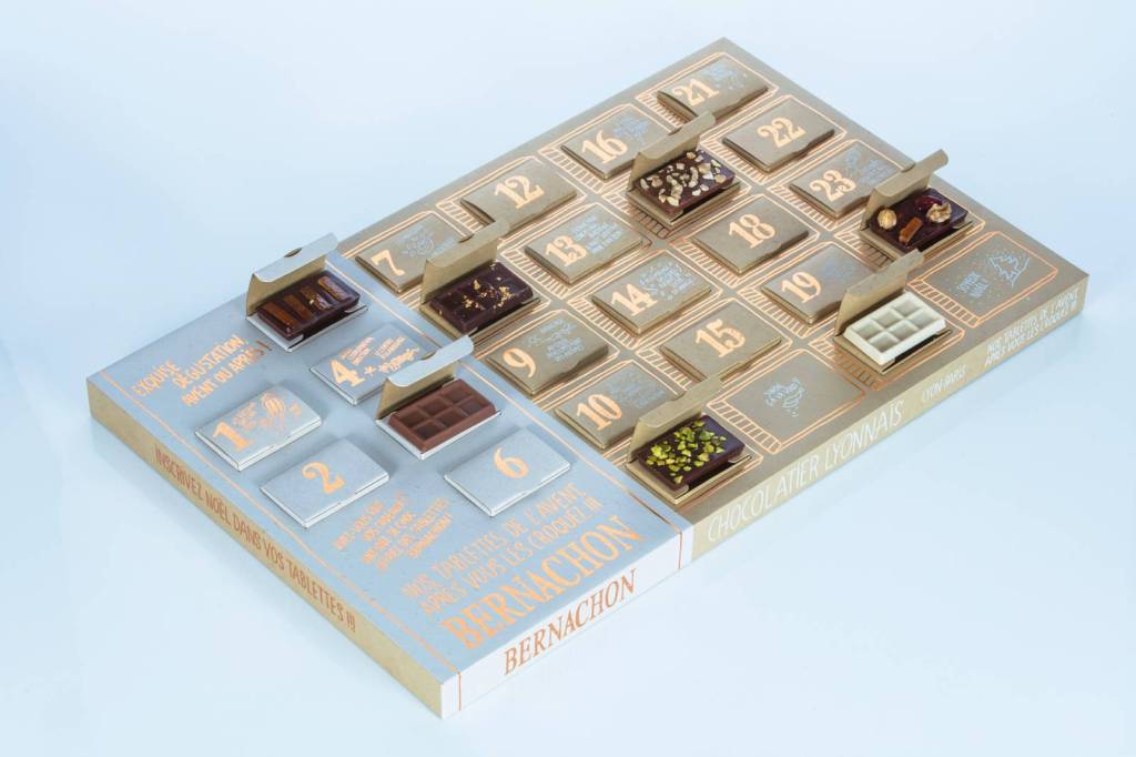 Avis aux fans de tablettes aux mille saveurs, c’est le calendrier de l’Avent qu’il vous faut. Ce chocolatier Lyonnais réputé vous propose chaque jour une mini tablette de chocolat renversante de délice. Le plus, le packaging est éco-responsable.