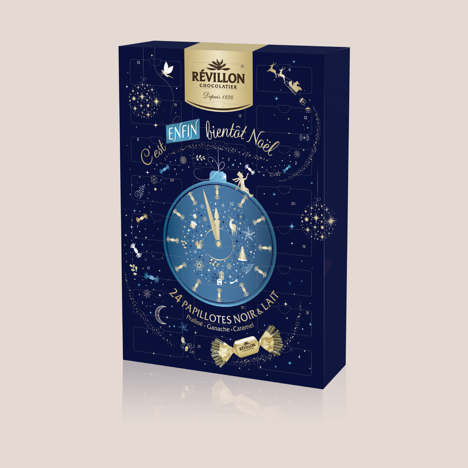 Comme on n’a jamais assez des papillotes pour enchanter la période de Noël, on commence un peu avant avec ce calendrier et on se fait un petit plaisir par jour. Noir ou au lait, praliné, ganache, ou caramel, il y en a pour tous les gouts !