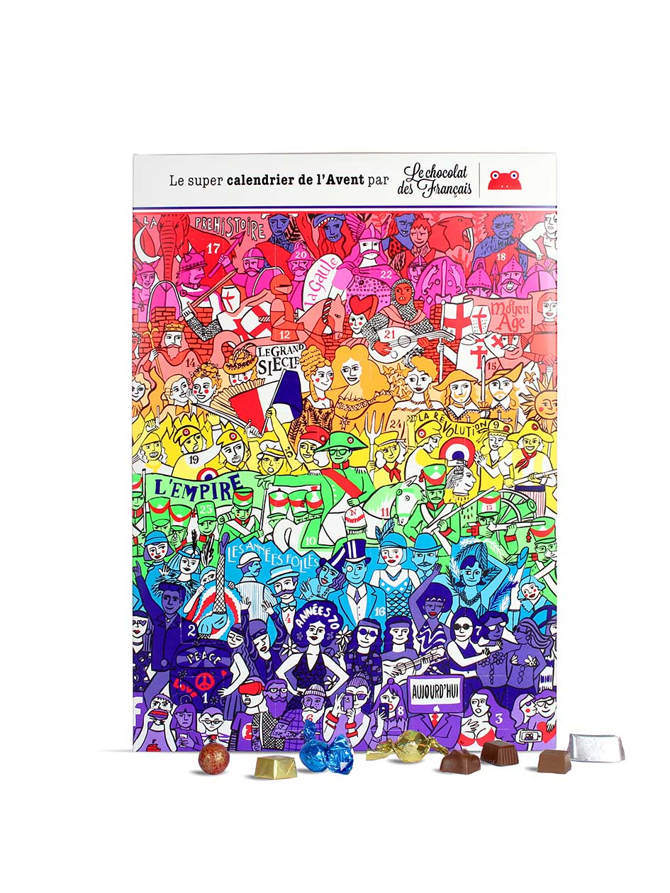 Chaque année un artiste s’invite dans l’univers de cette confiserie et chocolaterie française extraordinaire, pour décorer le calendrier de l’avent qui cache des pralines et des chocolats délicieux. La boite dessinée par Yuri Kitagishi est magnifique.
