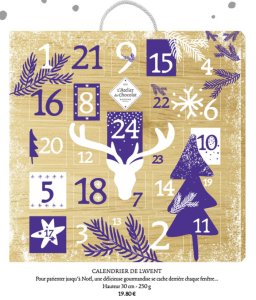 Comme on n’a jamais assez des papillotes pour enchanter la période de Noël, on commence un peu avant avec ce calendrier et on se fait un petit plaisir par jour. Noir ou au lait, praliné, ganache, ou caramel, il y en a pour tous les gouts !