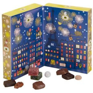 Quelle belle idée de présenter ce calendrier sous la forme d’un cracker géant. Les 25 gourmandises dissimulées sont juste des merveilles fidèles au voyage au pays des saveurs que nous propose La maison du Chocolat à travers toutes ses créations. Cette année les ganaches pralinées et les pates d’amande enrobées de chocolat sont des merveilles.