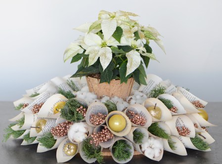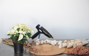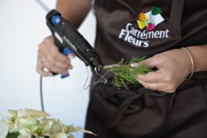 Même installation que pour la couronne ( voir DIY précédent) , on installe les éléments à peindre sur un carton (ou un papier journal) on bombe (après avoir bien agité la bombe pour décoller les paillettes du fond) à une distance de 30 cm environ dans une pièce aérée.