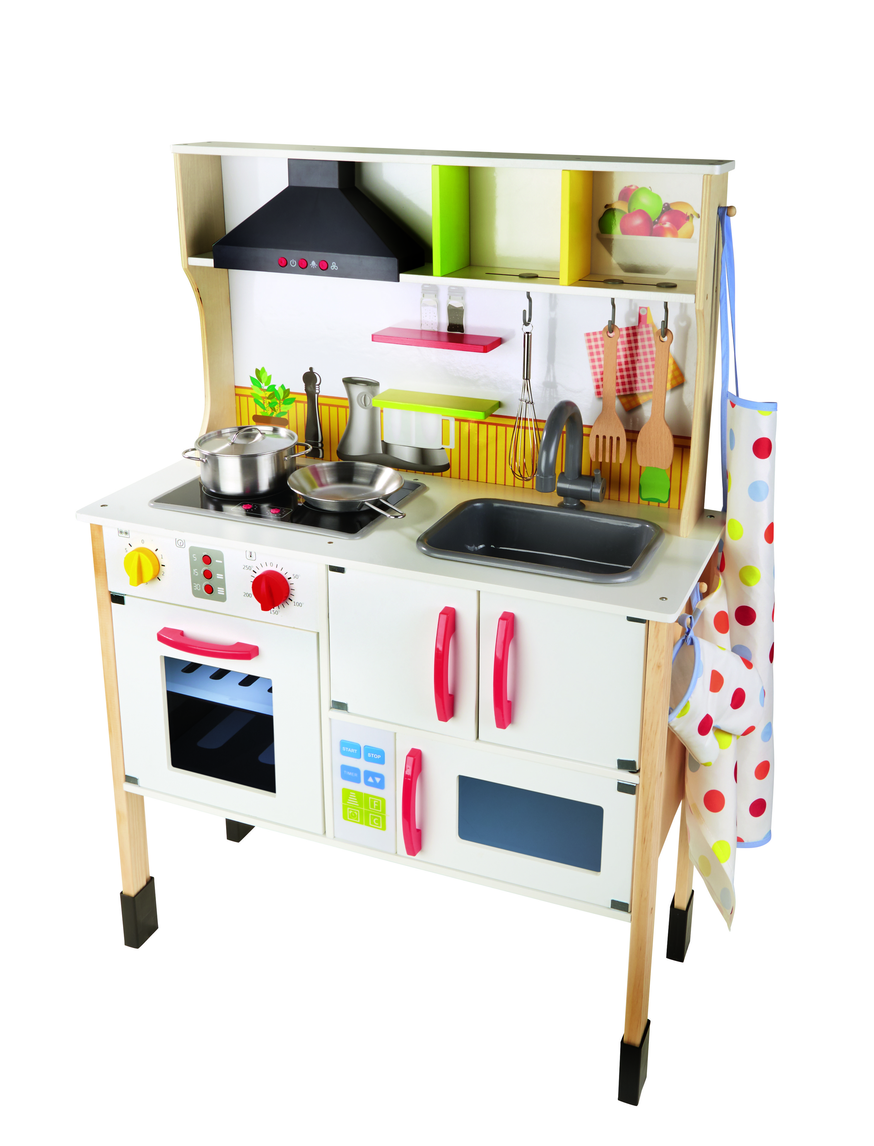 Pour les apprentis chefs il y a de très jolies cuisines et de très beaux accessoires. Pourquoi ne pas aussi jouer à la marchande avec une caisse enregistreuse, une balance et des petits aliments.