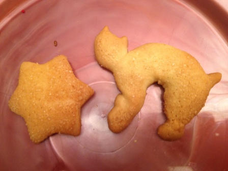 Formez une boule de 10 cm de diamètre et étalez avec un rouleau à pâtisserie puis amusez vous à faire des formes. Et avant de glisser les petits gâteaux au four à 180 °, passez un peu d’œuf battu avec un peu d’eau au pinceau par-dessus, puis saupoudrez de sucre ou laissez votre petit loup user de toute sa créativité…