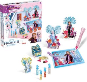 C’est un jeu de dés et de cartes avec une belle Elsa qui s’éclaire et donne des indices pour partir à la découverte de ses pouvoirs. Très amusant et le jeu est aussi féerique que l’univers du film !