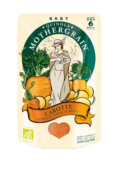 Pourquoi Mothergrain ? Ce fabricant spécialiste de la nutrition pour enfants a concocté des plats tout préparés (gamme Mothergrain Quinola) où le Quinoa est cuisiné avec d’autres ingrédients connus des enfants. Sans compter que des plats délicieux et instantanés (à chauffer 30 secondes au micro-ondes), cela dépanne. Les repas Mothergrain Quinola sont adaptés à chaque âge grâce aux différentes textures (lisse, écrasé à la cuillère et avec petits morceaux)