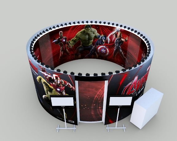 Vous êtes placés dans un studio circulaire, après avoir revêtu des accessoires de super héros. Et