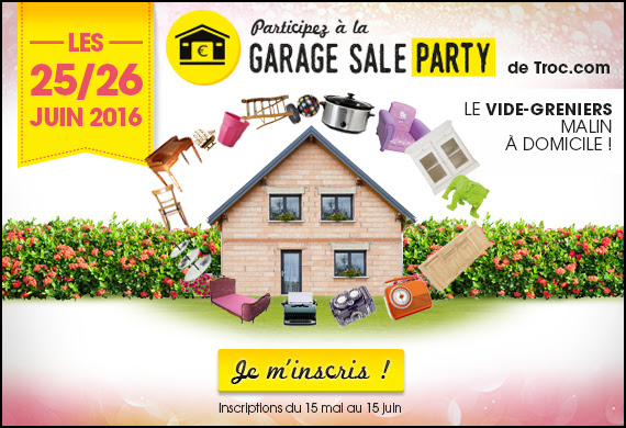 Imaginez un vide grenier sans se lever aux aurores et sans tout trimballer dans sa voiture… ce serait le rêve non ? Et bien voilà que la chose devient possible grâce à Troc.com, leader européen de l’occasion, Pour fêter le lancement de son Site de petites Annonces en juin prochain, l’enseigne s’inspire des Garage Sale Américain (qui permet aux gens de mettre une table devant leur garage pour vendre tout ce qui ne leur sert plus), pour lancer une grande opération nationale durant le week-end du 25-26 juin 2016